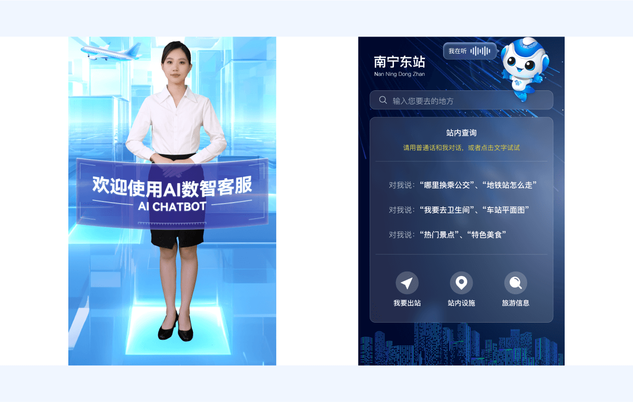 提供服务咨询、站内引导、融合换乘指导、周边商家等功能