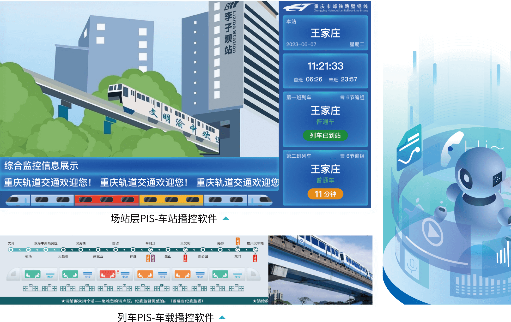 场站层及列车PIS系统SPIS/TPIS实现对本站/列车PIS设备的运行管理及信息显示,能接收并处理COCC-PIS、OCC-PIS发送的版式列表、播放列表、设备控制等指令,并在终端界面进行播放,也能实现本站乘客信息的发布、解除,同时实现SPIS/TPIS系统状态监视和设备控制功能。